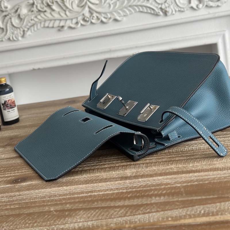 Reviews Over Hermes Jypsiere 28 Bag in Blue Jean Togo Leather